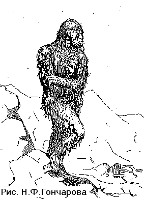 Anatoly nous a raconté sa propre rencontre avec un almasy dans les années 1980. Il délimitait un terrain proche d’ une ferme abandonnée près de Neutrino. D’une cachette, il vit passer un spécimen à seulement 40 mètres de distance. Il mesurait 1m80 mais était également puissamment bati. Il avait les cheveux gris «de la couleur de l’écorce d’un peuplier». Sa tête était bombée avec une crête sagittale et son nez était humain mais plus petit. Il n’avait pas de menton et un cou épais et court. Il balança ses longs bras en marchant.