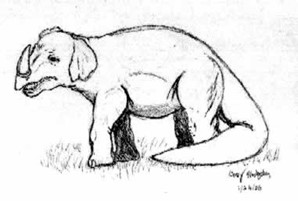 Certains éléments (comme la queue épaisse à sa base) peuvent faire penser au Mégathérium, même si ce n’est pas étayé par des fossiles, ou plutôt à Thalassocnus, une forme aquatique à cou allongé