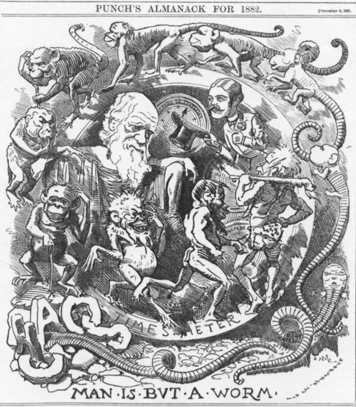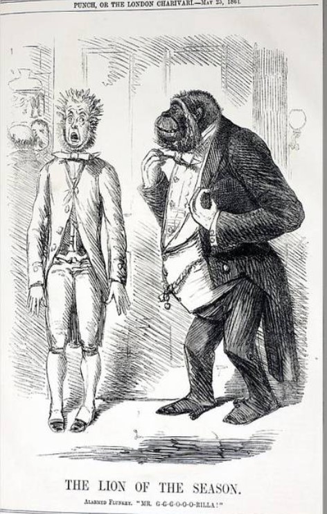 Thomas Huxley publie en 1863 Evidence to a man’s place in nature, un ouvrage dans lequel il recense les similarités physiologiques entre les grands singes et l ‘Homme. Mais d’après Huxley entre eux et nous, les différences sont tout de même abyssales, il parle d’un gouffre. Naît alors l ‘idée d’espèces intermédiaires entre l ‘homme et les singes. C’est la naissance du concept de «chaînon manquant».