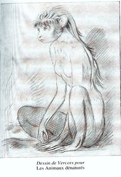 Dans Les animaux dénaturés de Vercors, publié en 1952, un jeune journaliste Douglas Templemore part en nouvelle Guinée ou des ossements d’un primate représentant le parfait chainon manquant ont été mis au jour. Sur place, bien plus que des fossiles, c’est une colonie entière de ces créatures bien vivantes qui est découverte. Baptisés Tropis, ces primates ressemblent à des singes mais enterrent leurs morts, taillent des pierres et possèdent un langage. Pressentie pour devenir une main d’œuvre esclavagisée leur avenir est compromis. Mais Templemore veut prouver qu’elle sont bien humaines et donc doivent disposer de droits. Pour le prouver il copule avec une femme tropis, qui tombe enceinte et accouche d’un bébé hybride. Templemore tue le nouveau né, et se livre à la police. Une partie importante du récit se déroule au cours du procès de Templemore, qui tient plus du débat scientifique qu’à l ‘élucidation d’un crime de sang. Les arguments sur la nature de ce qui caractérise un homme, le sépare d’un animal amène à s’interroger sur la vraie nature de l ‘Homme, et sa bestialité. L’angle autant légal, juridique, que scientifique et philosophique abordé par l ‘écrivain est également très précieux lorsque l’on imagine les conséquences concrètes d’une éventuelle découverte d’espèces nouvelles de primates évolués.