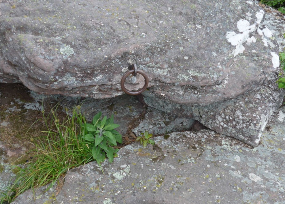 Si l ‘anneau présent ici a été posé en 1879, c’est une manifestation surprenante du mythe du déluge.Ces anneaux pourraient donc avoir été apposés « a posteriori», pour appuyer et prouver les légendes qui les mentionnaient ? Ou alors ne s’agit il que de remplacer l ‘anneau d’origine tombé en poussière ? Il est manifestement évident que si des anneaux de fer sont encore en place, et bien visible aujourd’hui ils ne peuvent qu’être âgés de quelques centaines d’années tout au plus.
