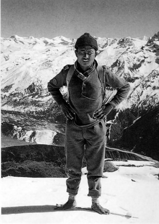 1960-61, qui a hiverné à 19 000 pieds ( 5800m) dans la région de l’Everest. Pendant ce l’hiver nous avons eu la visite de Man Bahadur, un pèlerin népalais âgé de 35 ans, qui vivait normalement à 6000 pieds (5 1800m). Il a passé 14 jours à 15 300 pieds (4600m) et plus, et pendant toute cette période ne portaient ni chaussures ni gants, et entraient la neige et sur les rochers pieds nus sans aucun signe de gelure. Il portait un minimum de vêtements et n’avait ni sac de couchage ni équipement de protection autre qu’un manteau de laine. Il a été surveillé en permanence pendant quatre jours, sans abri entre 16 500 pieds (5000m) et 17 500 pieds, avec des températures nocturnes entre -13°C et -15°C, et des températures diurnes négatives. Finalement, il a développé de profondes fissures dans la peau de ses orteils, ce qui a été infecté et il est descendu à des altitudes inférieurs pour cette raison. Si un des Européens de l ‘expédition avait suivi un tel régime, il serait revenu gravement gelé et en situation d’hypothermie.