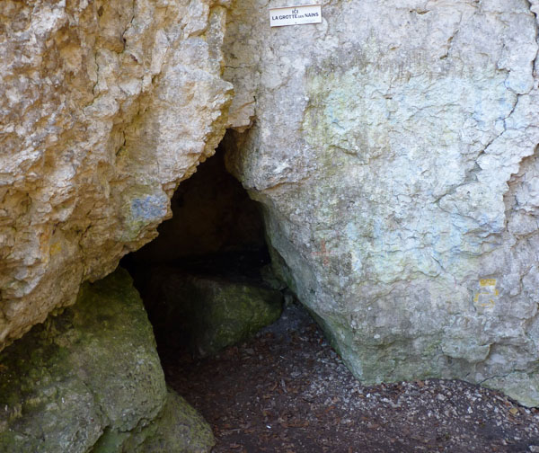A la sortie du village, un chemin balisé mène à la Grotte des Nains après une traversée en forêt du magnifique Erdwibalaschlucht, c’est-à-dire « le défilé des petites femmes de la Terre ». Cette gorge a été formée par le travail de l’eau dans le calcaire karstique. Au milieu de ce passage, un grand arbre s’élève pour atteindre la lumière : un tilleul âgé de plus de 140 ans. Située au fond de la gorge, la Grotte des Nains prend l’apparence d’une cavité qui s’ouvre dans la paroi rocheuse et se continue par deux boyaux, le tout développé sur plus d’une quinzaine de mètres.