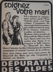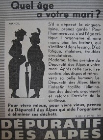 Réclames publicitaires pour le « Dépuratif des Alpes » (Arandel, 1927)