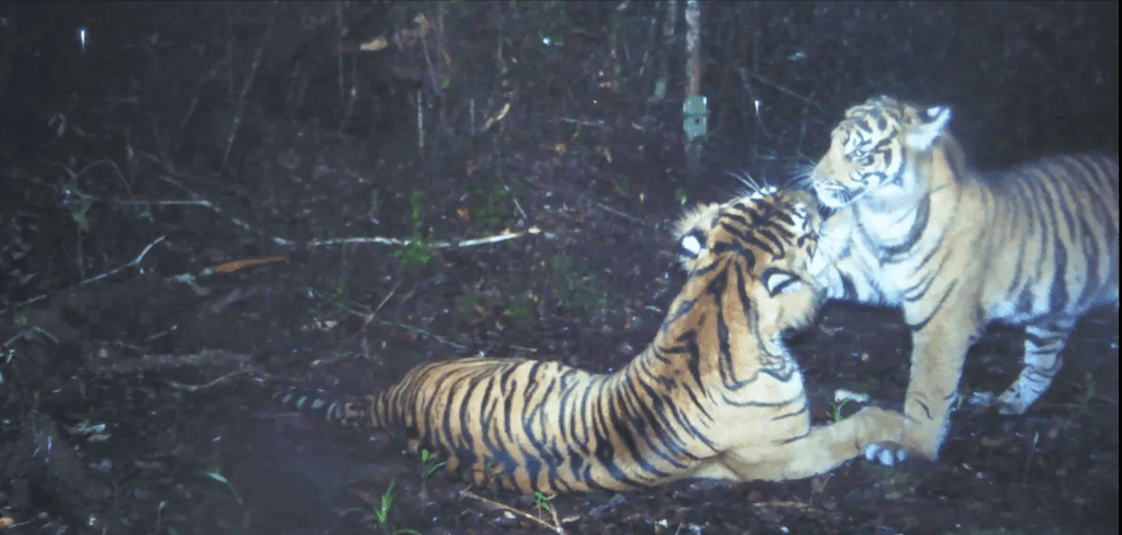 That night we checked out the pictures on the camera traps. Some showed nothing more exciting than leaves moving around. One had a persistent fly buzzing around it. But one camera held a surprise. On one camera from the first set we recorded an adult female Sumatran tiger! The camera took two stills and a sequence of film. The are in which it was taken is outside of the known range of the species. This is why I am keeping quiet about the exact are we were camped in. Around 600 individuals are thought to remain. Our discovery could represent an unknown population. It also proves that the cryptid ‘harimau tinggi’is based on a biological reality.