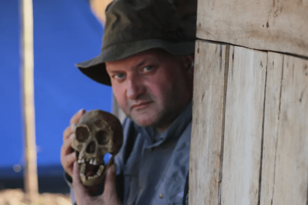 I had not heard of any new orang-kardil sightings but Dally had found some witnesses. Alan had built the skull as a prop for us to use in the documentary. We made cap in the narrow strip of jungle. The porters and guides slept in a small cave formed from gigantic boulders. The following day we explored the jungle. It swiftly became obvious that the are could not support a population of large primates and keep them hidden. The strip of jungle was only a few hundred meters wide and skirted the cliffs.
