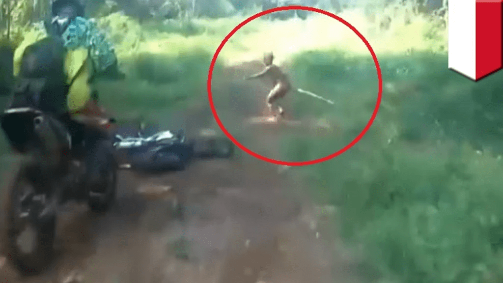 Sam, described a creature about two and a half feet tall with a very human-like face. It’s tiny body was covered in short yellow hair and it had long red hair on the head. The head hair fell own it’s back to it’s legs. He had been cutting bamboo when he saw it. The creature was carrying a stick. It ran away from him quickly.