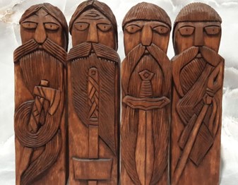 Reconstitution actuelle sous forme de totem des quatre nains supportant le ciel