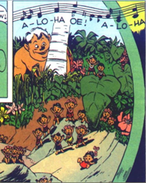 Semblable au nain de jardin disneyen, le menehune devient la mascotte de plusieurs entreprises