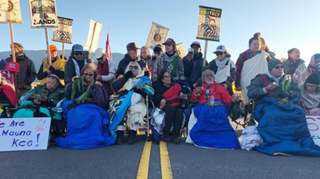 Des autochtones manifestant contre la construction d’un Télescope au centre de l’île d’Hawaï (Caleb Jones, presse canadienne, 2019)