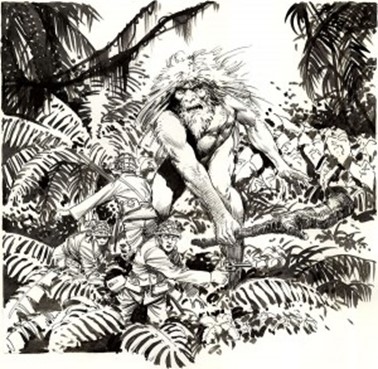 Marius Boirayon : Ces géants étaient connus pour être assez agressifs et même attaquer à l’occasion. Plusieurs unités militaires ont décrit ces bêtes terrifiantes traversant en fracas le feuillage pour ravager les sections de soldats, ou rompre en deux des arbres et des branches dans des démonstrations menaçantes de puissance. On prétendait que les balles avaient peu d’effets sur eux et qu’en de nombreuses occasions les soldats ont été tenus éveillés par un gémissement inhumain venant de l’obscurité au moment où les étranges géants erraient dans la nuit.