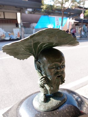 Avatars modernes du koropokkuru : minuscule humanoïde tenant un parapluie-pétasite