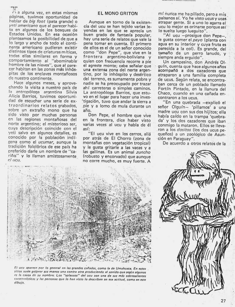 Voici quelques témoignages sur L’ucumar collectés par la jeune cryptozoologue vers 1971 :