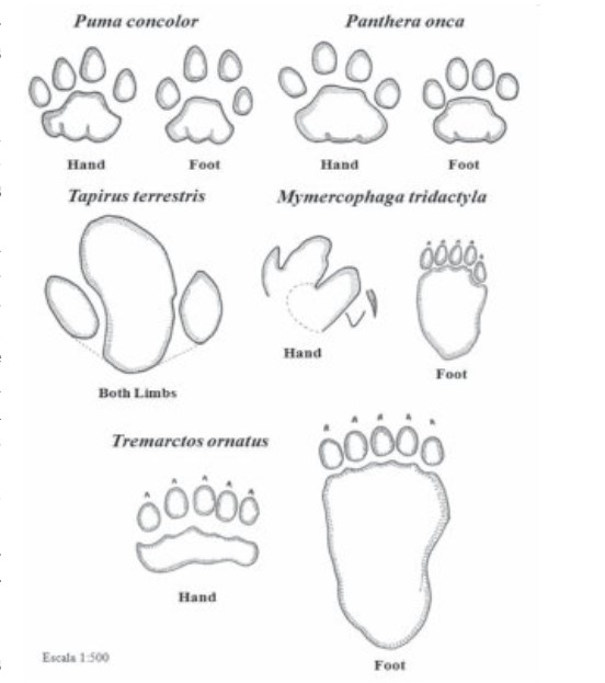 Et voici une collection d’empreintes de l’ours à lunettes du Salta, qualifiées d’étranges par certains experts. L’absence de traces de griffes n ‘est pas inhabituelle pour cette espèce.