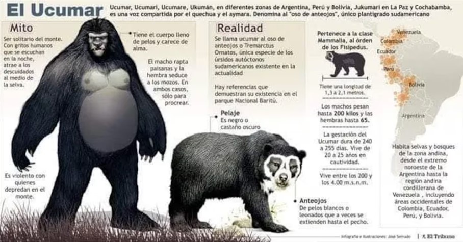 Reprenons la thèse officielle : L’ucumar est un ours, et tous les témoignages sont donc des erreurs d’identification. Maintenant, je vous résume le problème : Le territoire de l ‘ucumar est situé en dehors de la zone de répartition de l ‘ours à lunettes. Oui c’est un peu embêtant !