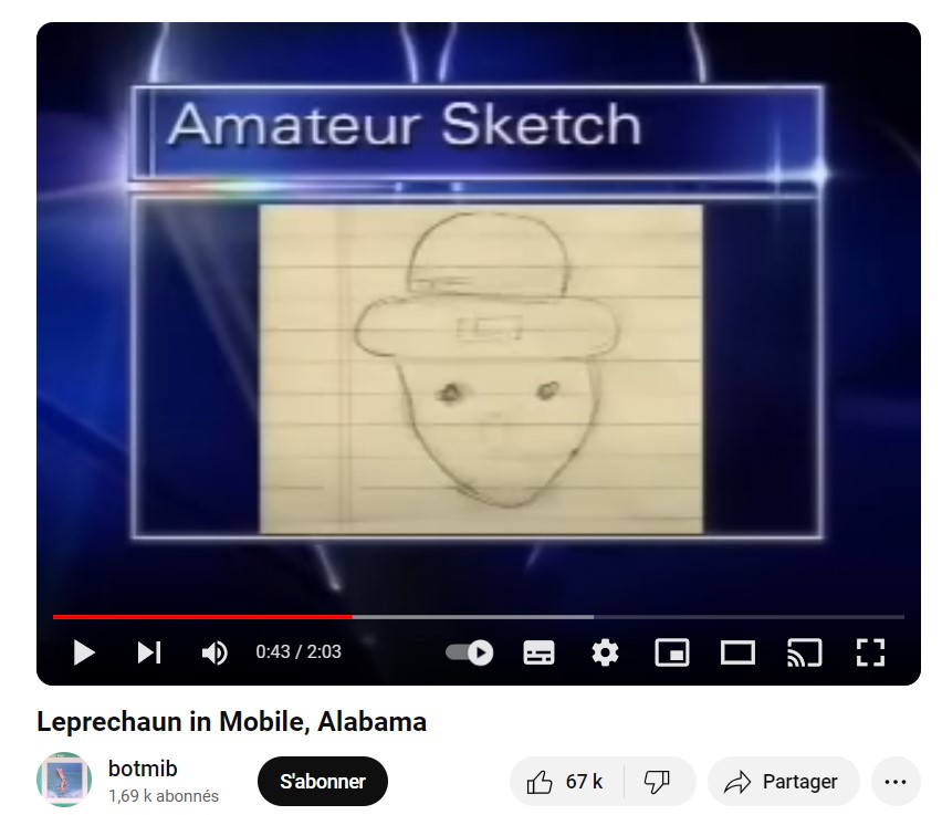 Mais après plusieurs mois de traque tout de même, la police locale parvint à mettre la main sur le coupable. Enfin, un coupable. Un homme de petite taille, muni d’un chapeau à l’aspect et au manières très étranges, il était sale, s’exprimait par des grognements. Le Leprechaun capturé, quid de son trésor ? Il fut possible de lui soutirer quelques mots, et d’en savoir plus sur son histoire, Logiquement il s’est avéré que la créature capturée n’était qu’un pauvre homme atteint mentalement. Son comportement et son apparence suffisait tout de même à en faire une attraction locale. Pour son plus grand malheur, car le Leprechaun, fut vendu 10 livres par son père à un cirque ! Jusqu’en 1914, il fut exhibé au Panopticon, un théâtre de music-hall de Glascow. Dernière précision utile pour cette histoire, il fut établi que le parcours du pauvre fou éliminait la possibilité qu’il fut l’objet des fameuses observations initiales. Les dates ne correspondaient pas ! Toute l’histoire, avec les articles de presse d’origine ici et ici.