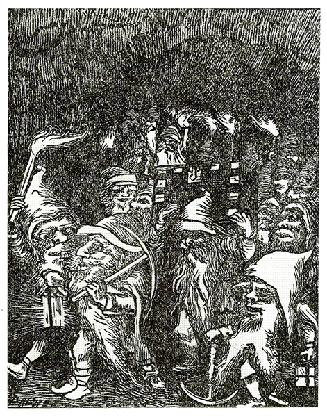 Lui emboîtant le pas, l’illustratrice Alice Woodward proposera une vision des brownies affublés d’un bonnet rouge dans The brownies and other tales (1910), modèle qui sera repris par la suite dans toutes les itérations illustrées de nains, dont le parangon demeurera le premier long métrage des studios Disney avec Blanche-Neige et les sept nains (1937) de David Hand.