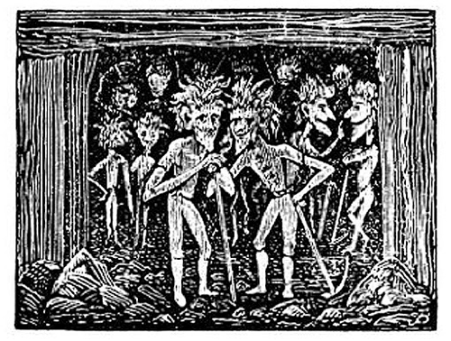 D’après cet récit datant de 1722, les Knockers, tiennent leur nom du fait que les mineurs entendaient souvent les bruits de mystérieux mineurs invisibles qui travaillaient à leurs côtés dans les puits. Ils percevaient des coups répétés dans l’obscurité, et parfois des voix lointaines chantaient dans l’obscurité des profondeurs.