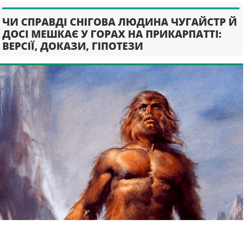 Un bonhomme de neige a également été aperçu dans les forêts de la région de Lviv. La réunion a eu lieu dans le district de Mostysky de cette région : « Mon grand-père a également raconté comment il avait vu une énorme créature ressemblant à un singe en 1926 à la frontière polono-ukrainienne, près du village de Krakovets. Le corps de la créature était recouvert de fourrure noire », se souvient Roman Melnyk, originaire de Lviv. «