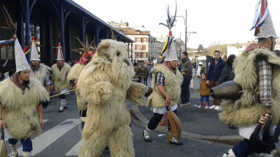 Outre ces avatars peu flatteurs de la culture moderne, le Basajaun était déjà tourné en ridicule lors du Carnaval de l’homme sauvage de Bayonne. Par rapport aux fêtes rituelles des Pyrénées orientales, l’ours est remplacé par le fameux Basajaun, dont le pelage abondant est simulé par une peau de mouton. Iñaki Serrada, passionné par la culture basque et responsable du Carnaval, tient à ajouter : « je suis natif de Lecumberry, au pied d’Iraty, là où l’on trouve les hommes sauvages ».