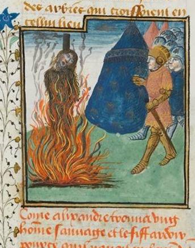 Pourtant, la figuration de l’homme sauvage brûlé la plus emblématique demeurera sans conteste celle du bal des Ardents , admirablement étudiée par Florent Pouvreau dans l’ouvrage Du poil et de la bête : Iconographie du corps sauvage en Occident à la fin du Moyen Age.
