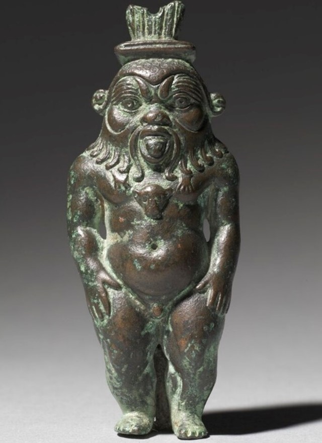 Dieu du petit peuple, il est devenu au cours du temps très populaire, présent sous forme d’amulettes dans tous les foyers, partout en Egypte, protecteur attitré du foyer, des femmes et des enfants. Il est également le protecteur du sommeil, considéré comme un état fragilisant dans lequel l’individu est à la merci de forces dangereuses. Ce joyeux compagnon du foyer sera une première ébauche, certes maladroite et mal dégrossie, du plus célèbre Silène de la période hellénistique.