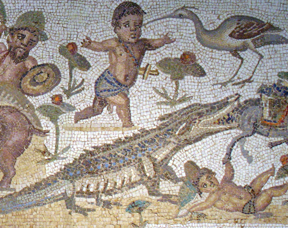 « Scène du Nil avec pygmées », mosaïque romaine du IIIe siècle ap. J.C (Metropolitan Museum of Art de New York)