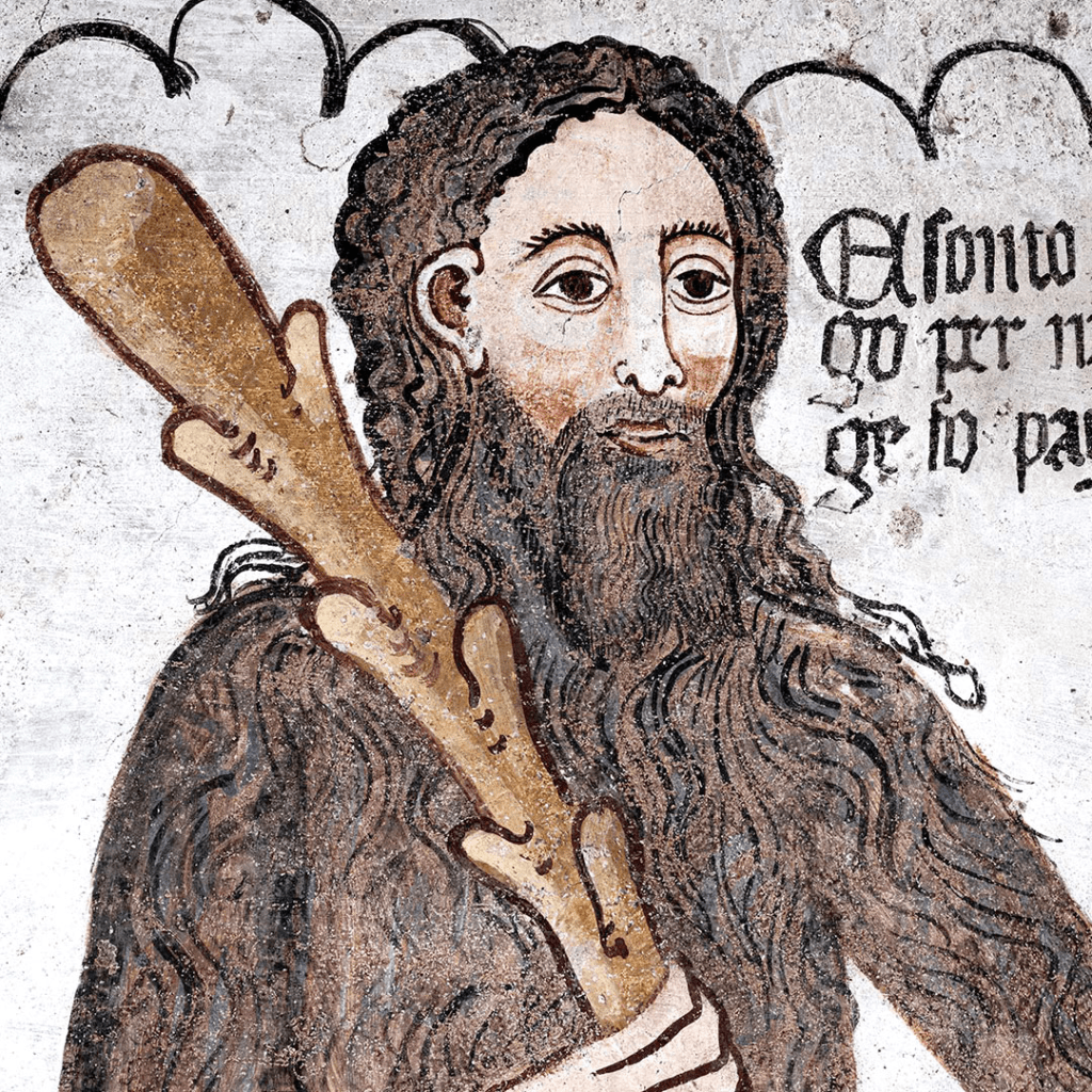 À Sacco, dans le Val Gerola (dans la province de Sondrio), à l’intérieur d’un bâtiment, en 1464, Battistino et Simone ont peint un homme sauvage, recouvert d’une épaisse fourrure brune qui ne laissait découverts que son visage, ses mains et ses pieds. Dans sa main, il tient un grand bâton noueux, et une inscription près de sa tête dit :