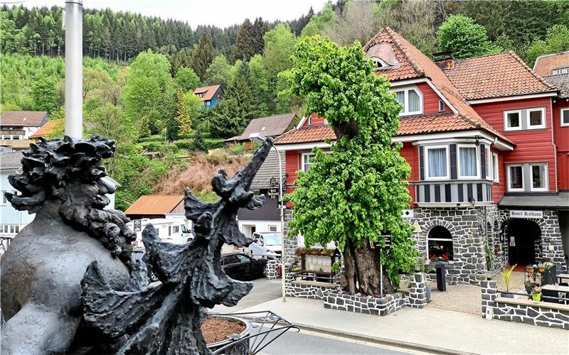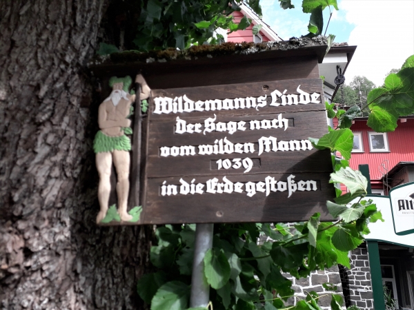 On raconte que l’homme sauvage aurait lui-même enfoncé l’arbre avec acharnement dans le sol lors d’un combat contre ses chasseurs. C’est du moins ce qui est écrit sur le panneau accroché au tilleul devant l’hôtel de ville.