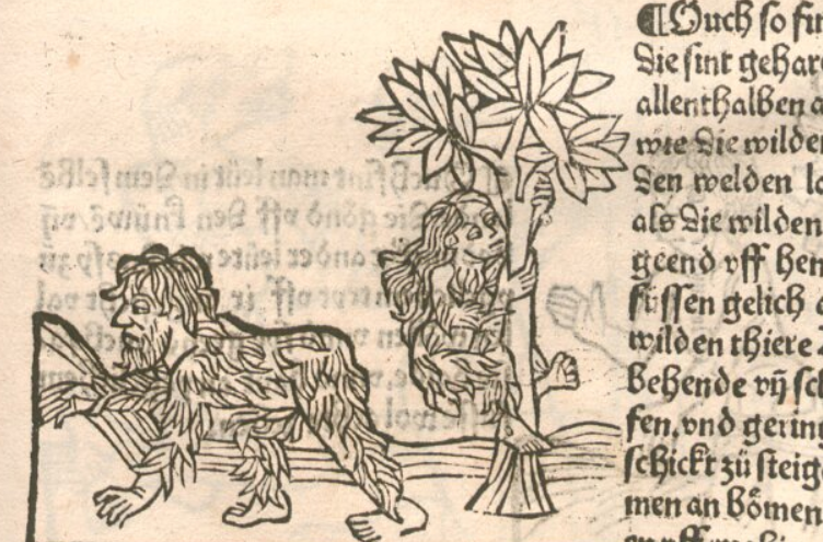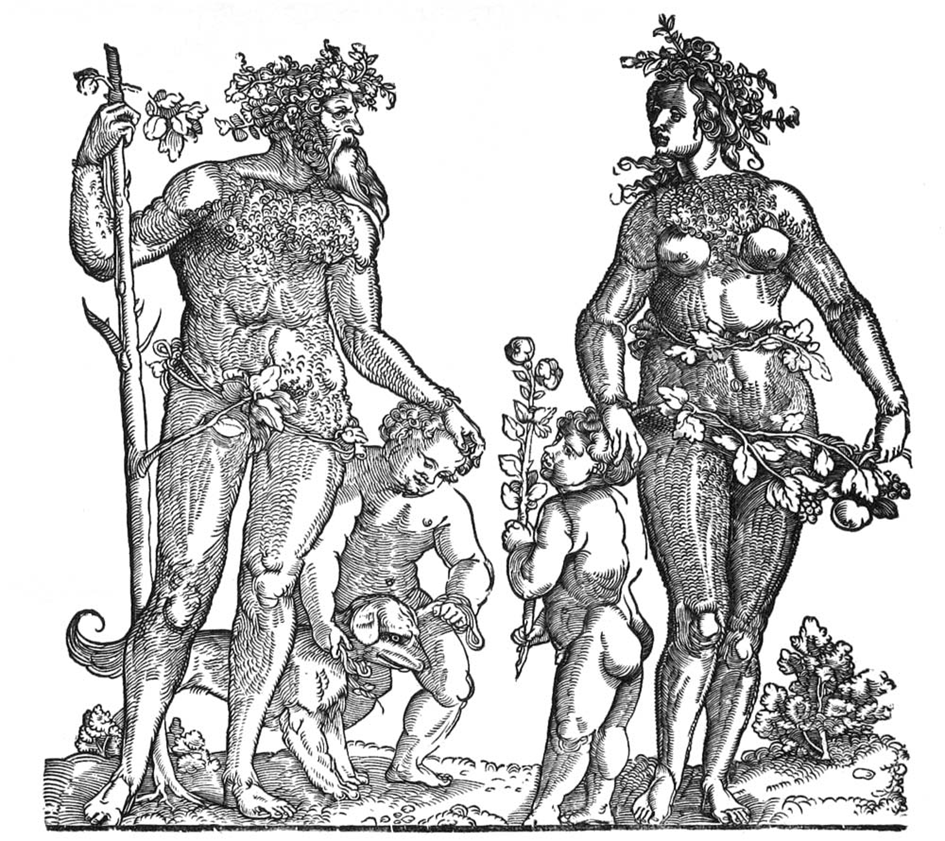 Cette silhouette caractéristique, d’un homme féral barbu, peu vétu, débonnaire, est celle qui est restée dans l ‘imaginaire allemand, au détriment de l’ homme des bois, velu, géant, et farouche. Un processus que l ‘on rencontre aussi ailleurs en Europe, à partir du 16ème siècle, le peuple sauvage devient de plus en plus symbolique, et inoffensif.