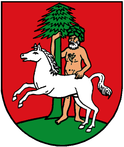 Le blason de Wildermann représente en rouge sur fond vert, debout, un homme sauvage nu avec une couronne de feuilles vertes, sa main gauche sur le dos d’un cheval d’argent bondissant ; de sa main droite, il tient un sapin vert enraciné poussant hors du sol. Cette image héraldique, également courante dans d’autres régions minières, est un symbole répandu dans le Harz, comme en témoignent les pièces de monnaie d’argent Wildemannstaler des anciens ateliers monétaires du Haut-Harz.