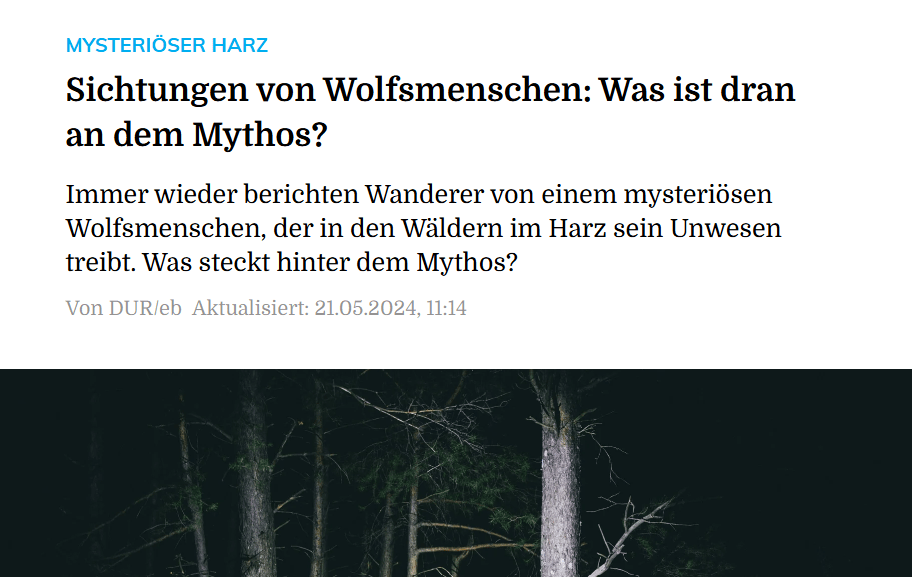 En allemagne, cet homme ensauvagé est parfois nommé également homme loup/Wolfmensch. Et au moment même où j ‘écris ces lignes, un d’entre eux fait la une des journaux. Evidemment, tout cela se déroule dans le Harz.