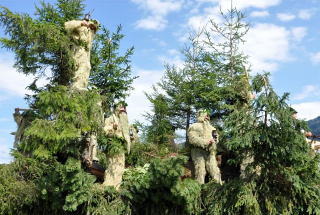 A Oberstdorf, une ville alpine nichée à 800m d’altitude, la plus au sud du pays, il est possible de voir danser des hommes sauvages, en chair et en os. Ils ont une apparence rustique et débonnaire, quoique un peu inquiétante, tels des esprits et des fantômes de la forêt. Leur costume, le Häs, est une combinaison cousue de lichen mousseux récolté sur les arbres entre 1000 et 1600 mètres d’altitude, et il pèse à lui seul six à sept kilos. Une ceinture de brindilles de sapin fraîches s’enroule autour de leur taille et une couronne de feuilles de houx repose sur la tête.
